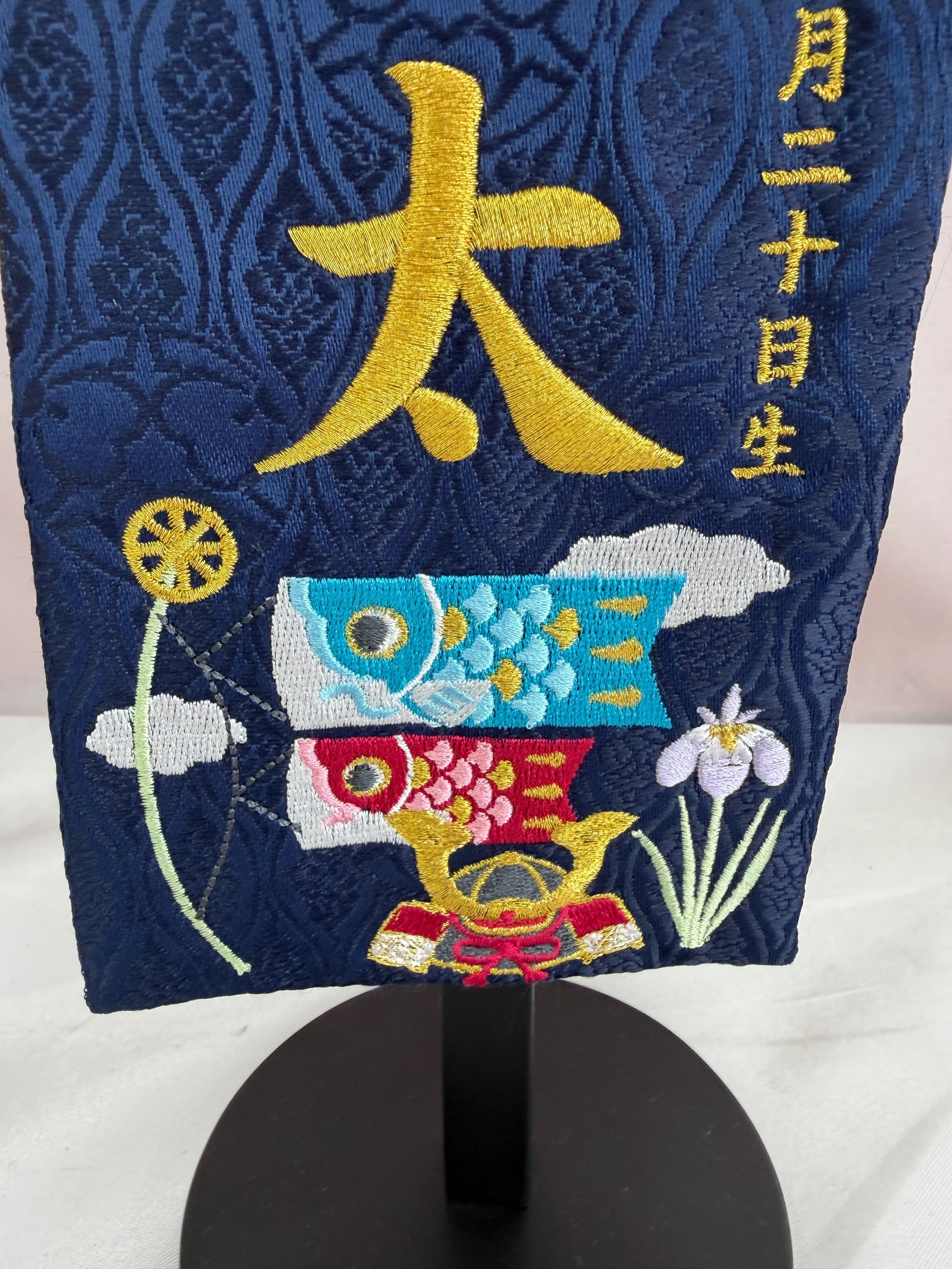 ジャガード織りの生地に刺繍が入っており大変豪華なお名前旗になっております。