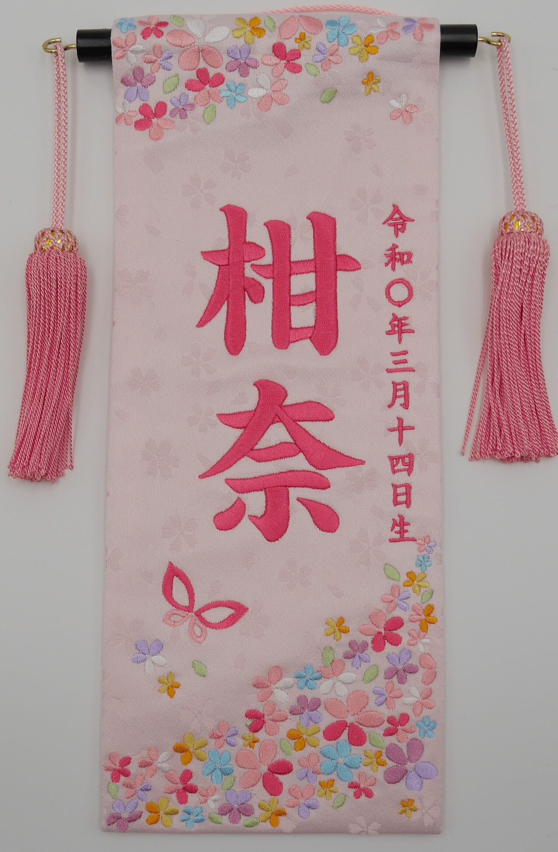 送料無料! 名前旗 総刺繍 はるかぜ 薄ピンク(小) ピンク房(1329)