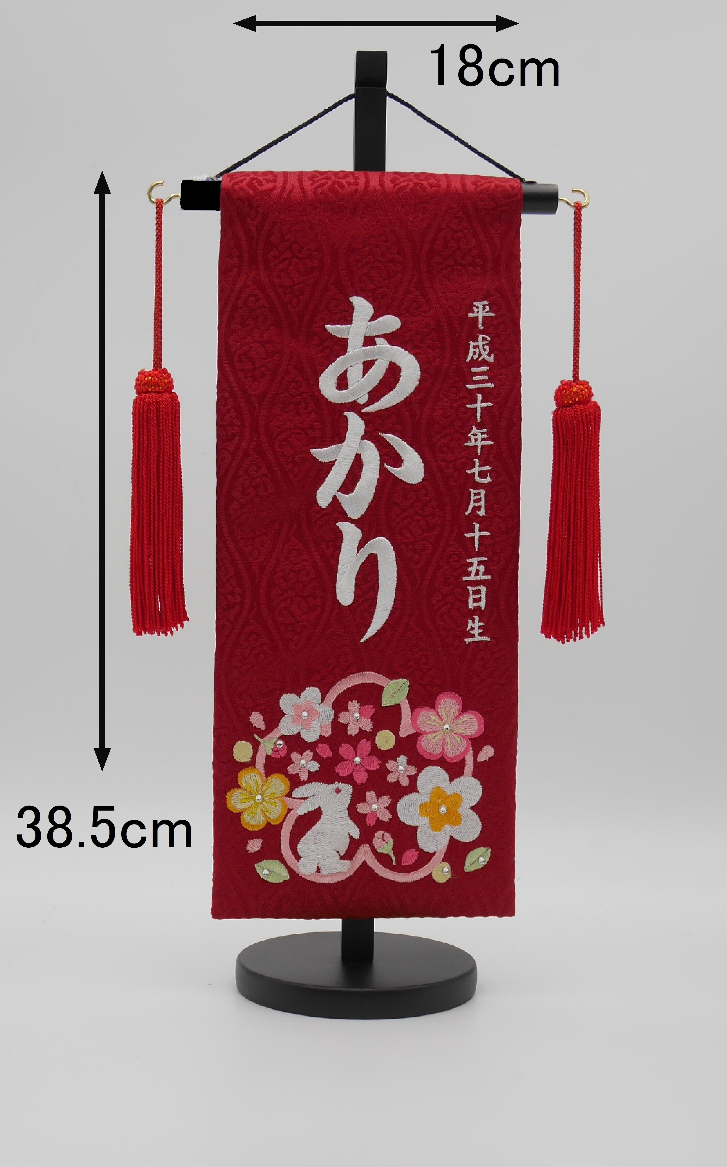 送料無料! 名前旗 総刺繍 花見うさぎ(小) 赤 スワロフスキー付 白刺繍 赤房(1313)